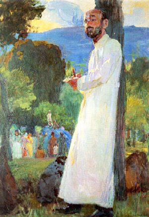 After graduation in 1894, Tadeosian returned to Armenia and taught for a year at the Kevorkian Seminary of Holy Etchmiadzin. In 1896 he returned to Moscow and participated in the 24th salon of the Peredvizhniki (“The Wanderers”), a group of realist painters to which his teachers Makovsky and Polenov were affiliated. The budding artist won two prizes in 1898 at the competition of the Society of Artists of Moscow for his paintings “Midday Meal” and “Preaching to the Right Believers.” He traveled to Palestine with his mentor Polenov in 1898 and, later, almost every day traveled through the Middle East and Europe (until 1914), Russia, and Armenia, which became the source for his art.