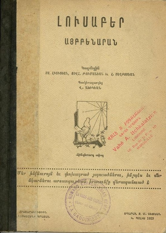 Lisitsian worked in the pedagogical field for almost 60 years. Besides the publication of Hasker, he wrote textbooks, curricula, and specialized studies. The textbook Lusabats (“Daybreak”), which he authored with Toumanian and Levon Shant, was particularly popular. He also traveled to Russia, Switzerland, France, and Germany to study new teaching methods. In 1911 he turned his wife’s elementary school into a middle school and then a high school, of which he became its principal in 1924, when the school was dissolved. He moved to Yerevan in 1924 and became a university professor, and from 1938 he also taught at the Pedagogical Institute.